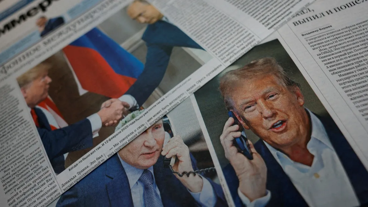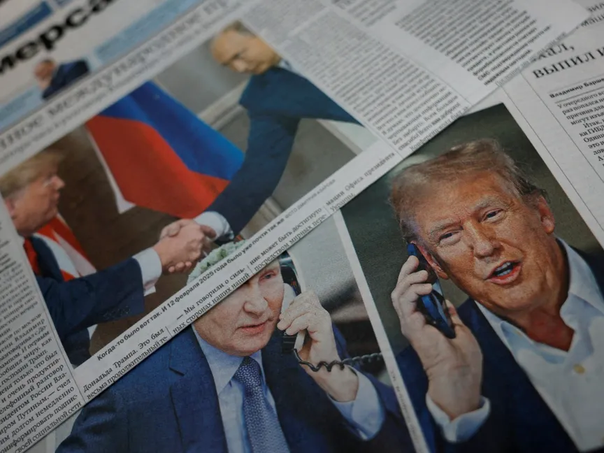 صحف روسية تتحدث عن مكالمة هاتفية سابقة بين الرئيس الروسي فلاديمير بوتين ونظيره الأميركي دونالد ترمب. موسكو. 13 فبراير 2025 - Reuters