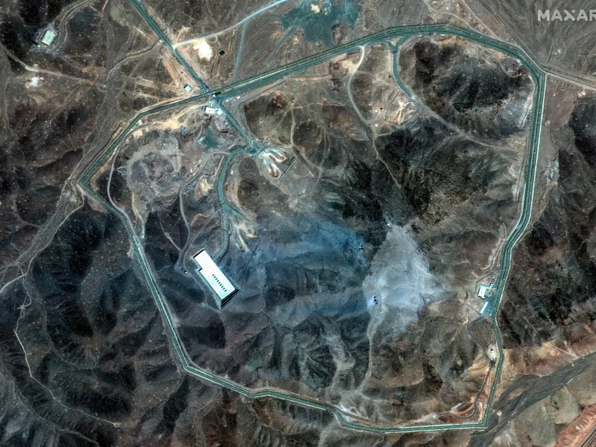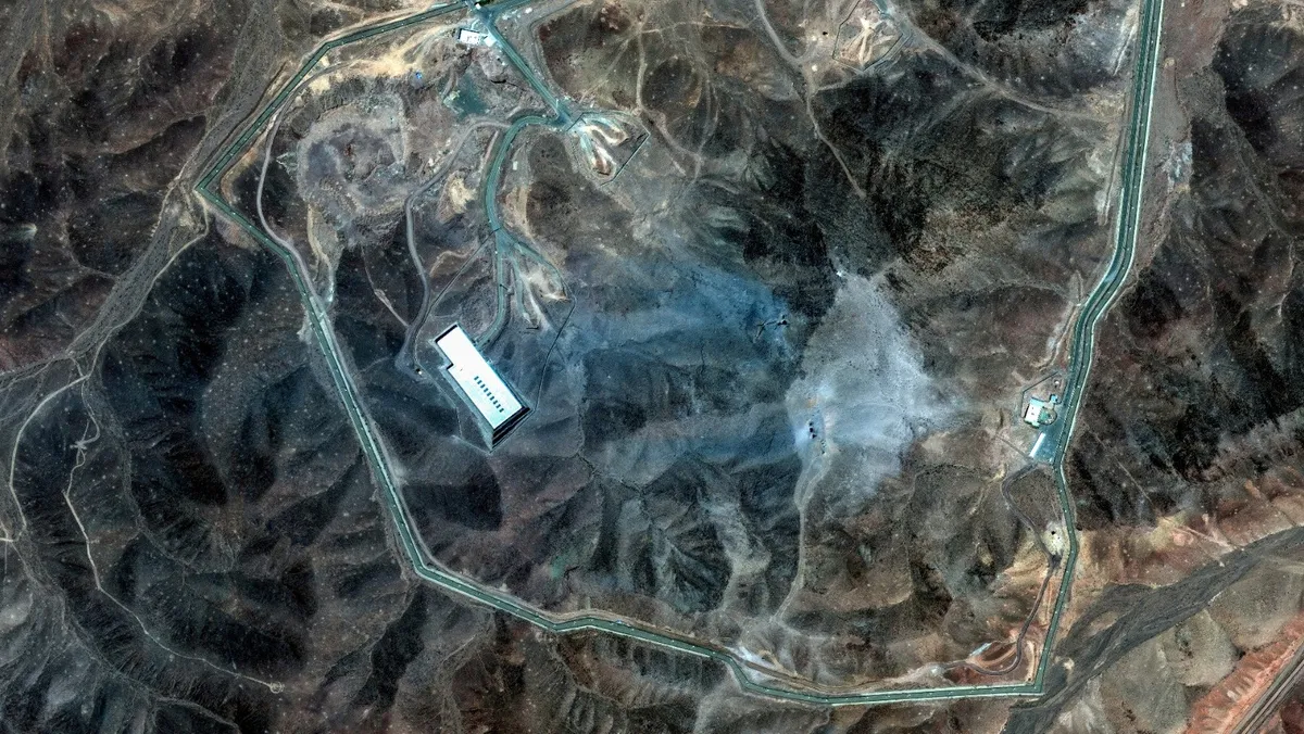 صورة بالأقمار الصطناعية لمنشأة فوردو النووية المحصنة تحت الأرض بعد الضربات الأميركية. 22 يونيو 2025 - REUTERS