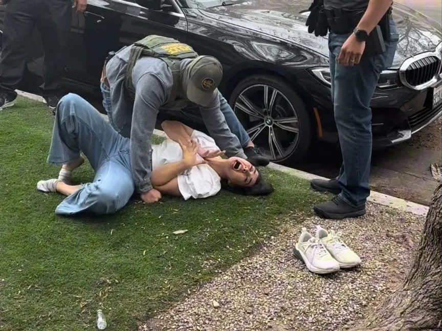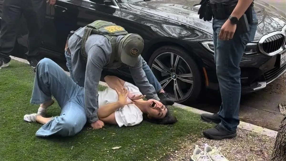 وقال إنه عندما ألقى مسؤولو إنفاذ القانون القبض على المرأة بدأت تنتابها نوبة هلع وأصيبت بتشنجات على الأرض.