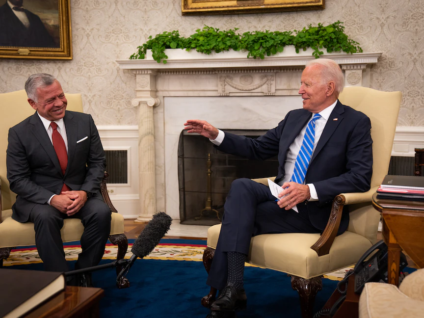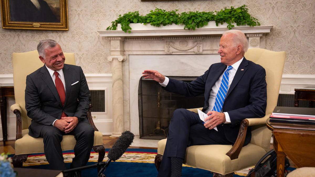 الرئيس الأميركي جو بايدن بجانب الملك الأردني عبد الله الثاني في البيت الأبيض، 19 يوليو 2021 - Bloomberg