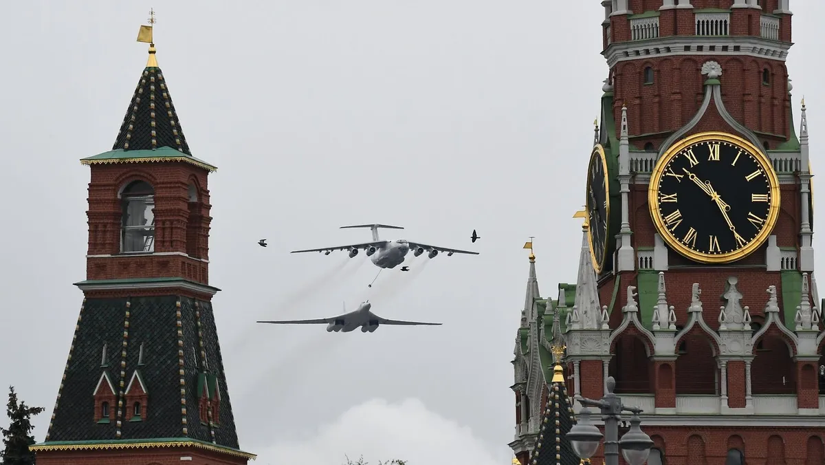 طائرتان عسكريتان تحلقان فوق الكرملين والساحة الحمراء وسط مدينة موسكو، 9 مايو 2020 - AFP