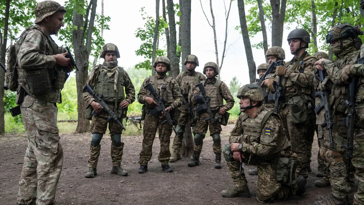 متطوعون أجانب خلال تدريبات عسكرية في ميدان تدريب قرب خط الجبهة، بمنطقة خاركيف، أوكرانيا، 25 يونيو 2025 - REUTERS