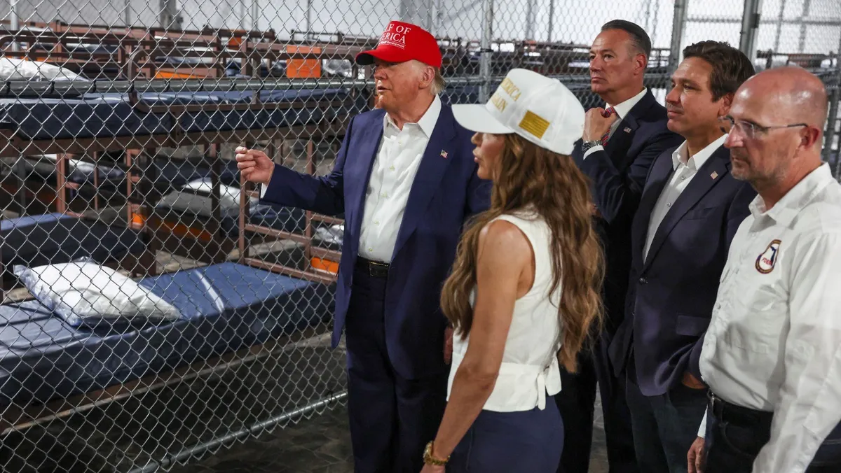 ويقع المرفق على بعد 60 كيلومتراً من ميامي، في منطقة رطبة شبه استوائية واسعة مكتظة بالتماسيح، علماً أن إدارته استخدمت صور التماسيح لإظهار تصميمها على إبعاد المهاجرين، الذين يقول إنهم سُمح لهم بالبقاء في البلاد بشكل خاطئ في عهد إدارة الرئيس السابق جو بايدن.
