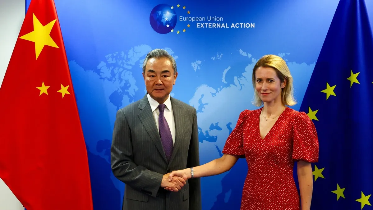 وأضاف المسؤول، الذي رفض كشف هويته، أن هذا التصريح جاء خلال اجتماع استمر 4 ساعات مع كالاس، الأربعاء، في بروكسل، شهد "مناقشات صعبة ولكن غلب عليها الاحترام"، وتناول مجموعة واسعة من القضايا من الأمن السيبراني ومعادن الأرض النادرة إلى اختلال الميزان التجاري، وقضية تايوان، والوضع في الشرق الأوسط".
