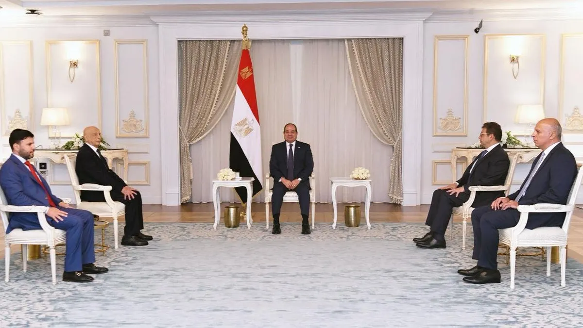 جاء ذلك خلال استقباله رئيس مجلس النواب الليبي عقيلة صالح ومستشاره السياسي حميد الصافي، بحضور رئيس المخابرات العامة المصرية اللواء حسن رشاد، وفق بيان من الرئاسة المصرية.