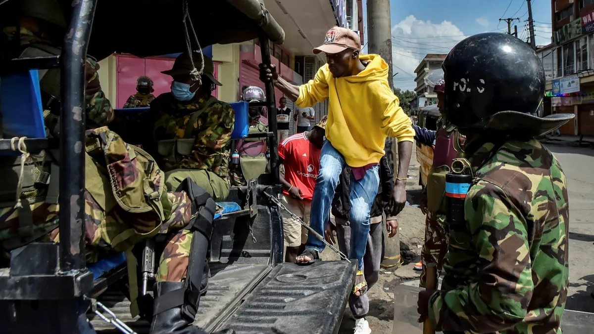 وقالت اللجنة الوطنية لحقوق الإنسان في كينيا، إنها رصدت عناصر أمن ملثمين بلا زي رسمي يستقلون سيارات دون لوحات، وأشارت إلى أن عصابات مسلحة بالسياط والسواطير تعمل على ما يبدو إلى جانب قوات الأمن في نيروبي وإلدوريت.