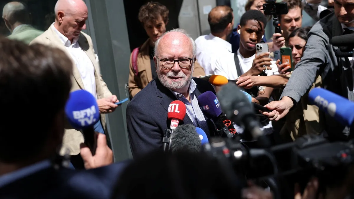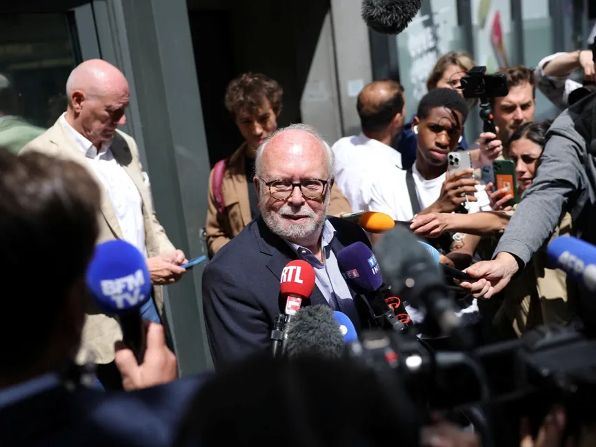 السياسي الفرنسي في حزب التجمع الوطني واليران دو سان جوست يتحدث إلى الصحافيين بعد مداهمة الشرطة الفرنسية لمقر الحزب اليميني المتطرف في باريس، فرنسا، 9 يوليو 2025 - REUTERS