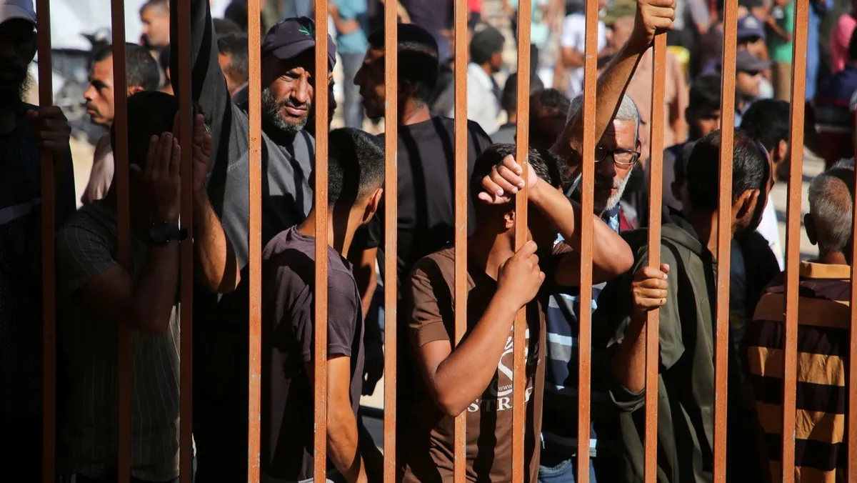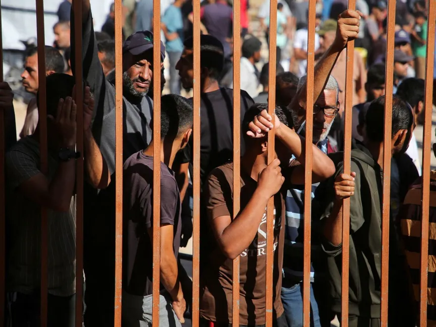 فلسطينيون خارج المشرحة يبكون ضحايا قُتلوا في هجمات إسرائيلية استهدفت خياماً، مستشفى ناصر بمدينة خان يونس، جنوب قطاع غزة، 9 يوليو 2025 - REUTERS