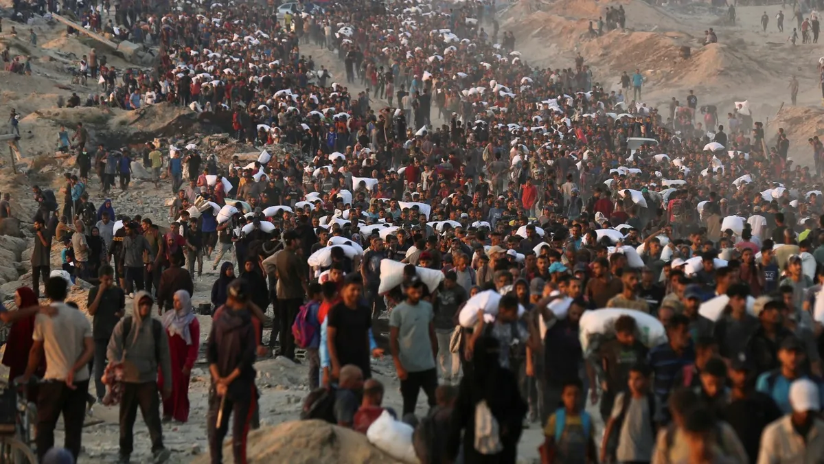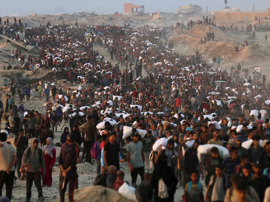 فلسطينيون يتجمعون لتلقي إمدادات المساعدات في بيت لاهيا، شمالي قطاع غزة. 17 يونيو 2025 - Reuters