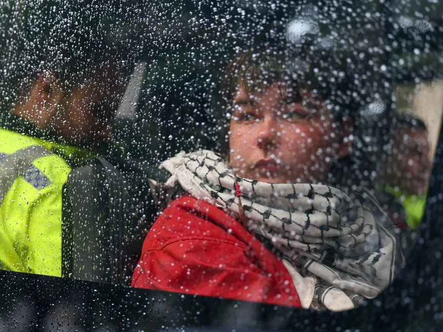 وذكرت الشرطة في منشور على منصة "إكس" أن الحشد تجمع في ساحة البرلمان وأخذ يلوّح بلافتات تدعم الحركة التي حُظرت هذا الشهر بموجب قانون مكافحة الإرهاب. وكان بعض المحتجزين يرتدون الكوفية الفلسطينية.