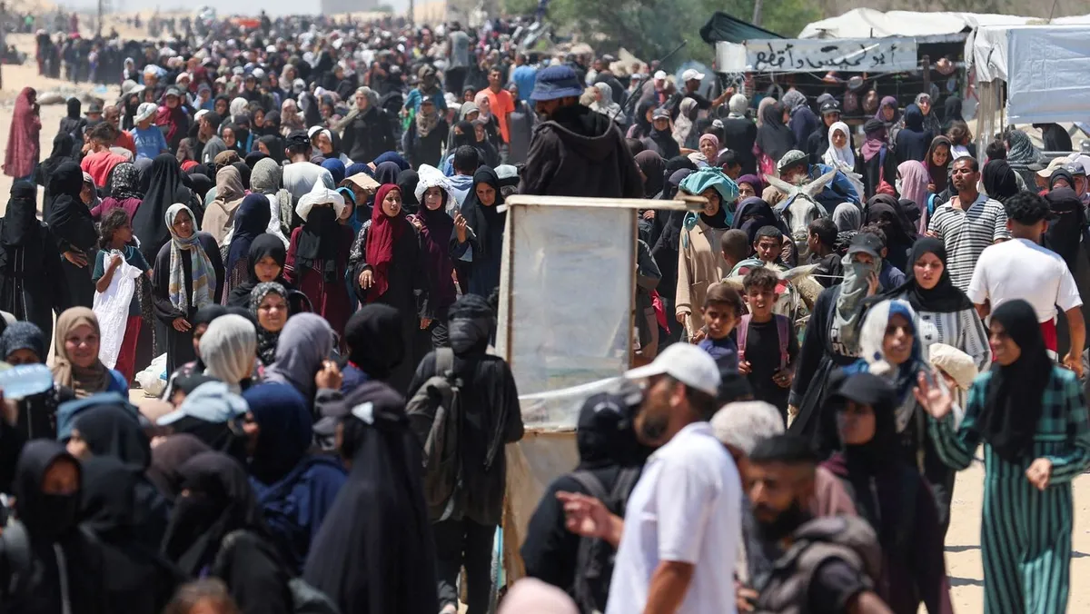 فلسطينيون يتجمعون أثناء سعيهم للحصول على مساعدات قرب رفح، جنوب قطاع غزة. 24 يوليو 2025 - REUTERS