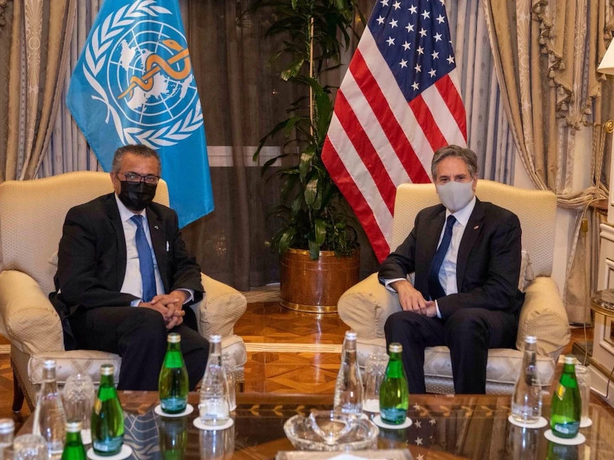 وأعلن المتحدّث باسم وزارة الخارجية الأميركية نيد برايس، أن الوزير والمدير العام "ناقشا فرص التعاون لمواصلة إصلاح وتقوية منظمة الصحة العالمية".