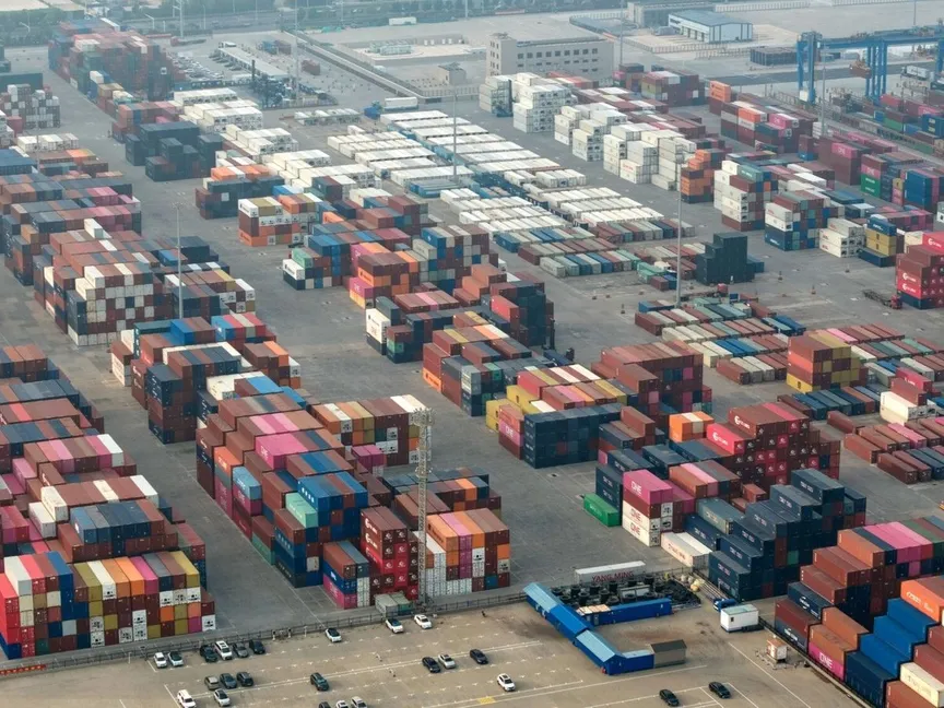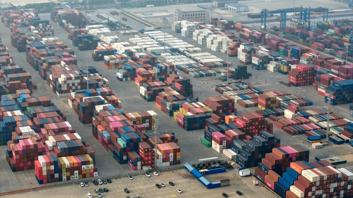 حاويات البضائع بميناء تشينجداو في الصين. 10 يوليو 2025 - Bloomberg