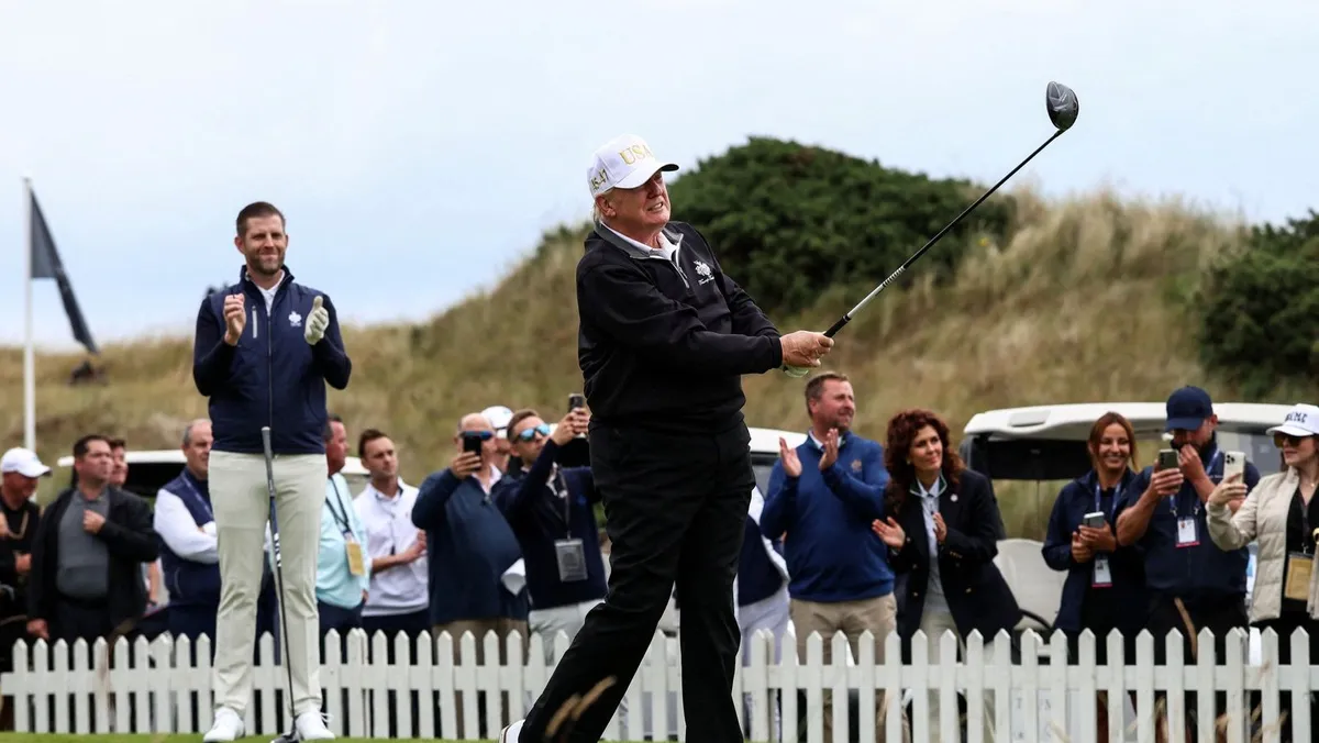 الرئيس الأميركي دونالد ترمب في افتتاح ملعب "ترمب إنترناشيونال جولف لينكس" في بالميدي، أبردين، اسكتلندا، بريطانيا، 29 يوليو 2025. - REUTERS