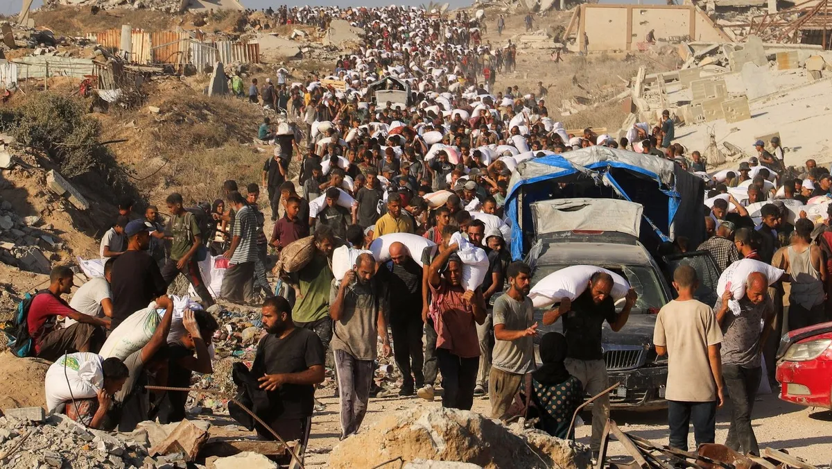 آلاف الفلسطينيين يحاولون الحصول على مساعدات غذائية في بيت لاهيا بشمال قطاع غزة وسط أزمة جوع طاحنة. 3 اغسطس 2025 - REUTERS