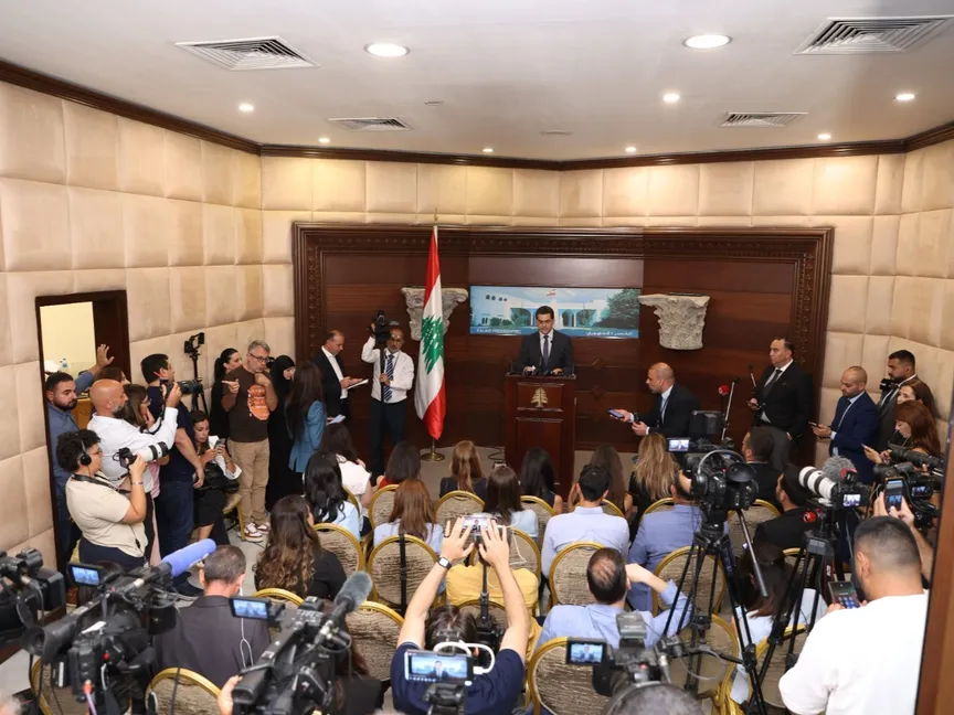 وزير الإعلام​ اللبناني بول مرقص خلال مؤتمر صحافي عقب عقد جلسة مجلس الوزراء في بيروت. 7 أغسطس 2025 - x/LBpresidency