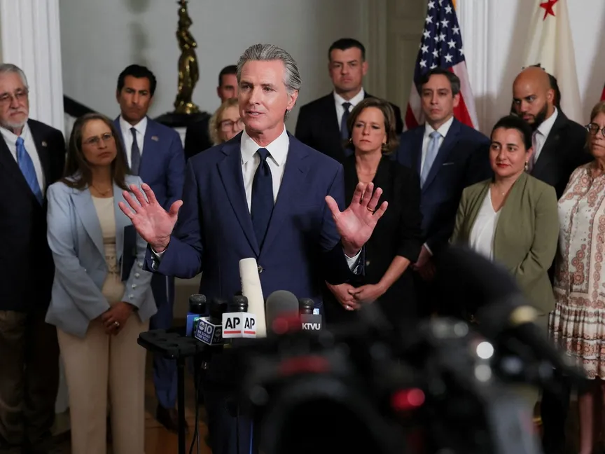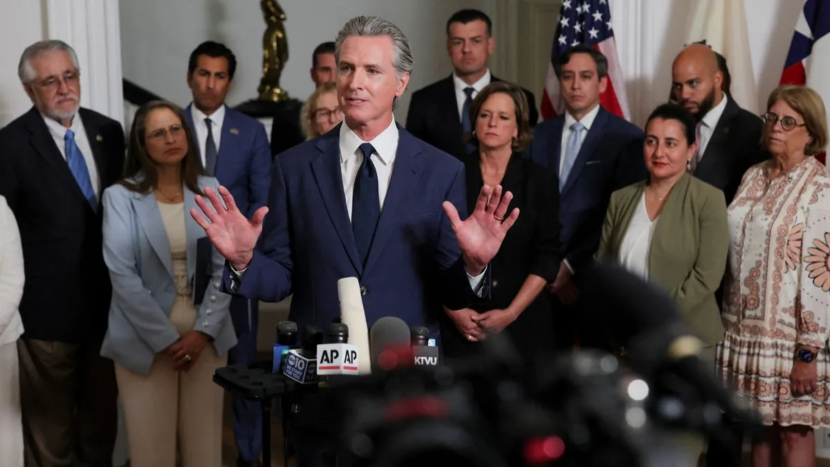 وأضاف: "كاليفورنيا لن تقف مكتوفة الأيدي وتشاهد هذه الديمقراطية وهي تذبل، سنواجه النار بالنار. سنفرض وجودنا، وسنستغل تأثيرنا بأقصى قوة ممكنة، وسيكون لذلك أثر عميق على النتائج الوطنية، وليس فقط هنا في ولاية كاليفورنيا".