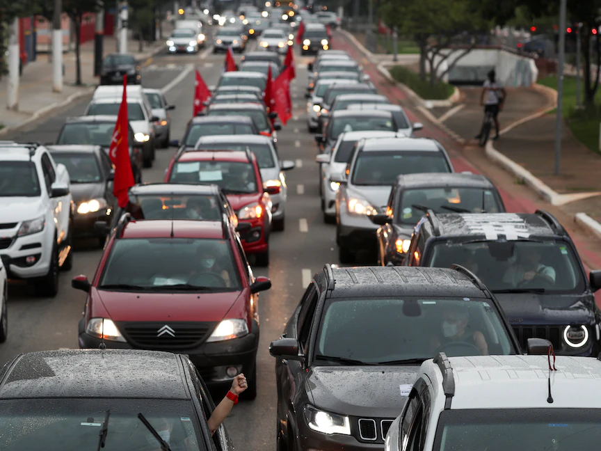وجاب موكب من نحو 500 سيارة الشوارع الرئيسية للعاصمة برازيليا، بدعوة من أحزاب ومنظمات يسارية، رافعين شعارات على غرار "اللقاح للجميع"، و"بولسونارو ارحل"، و"نعم للعزل".