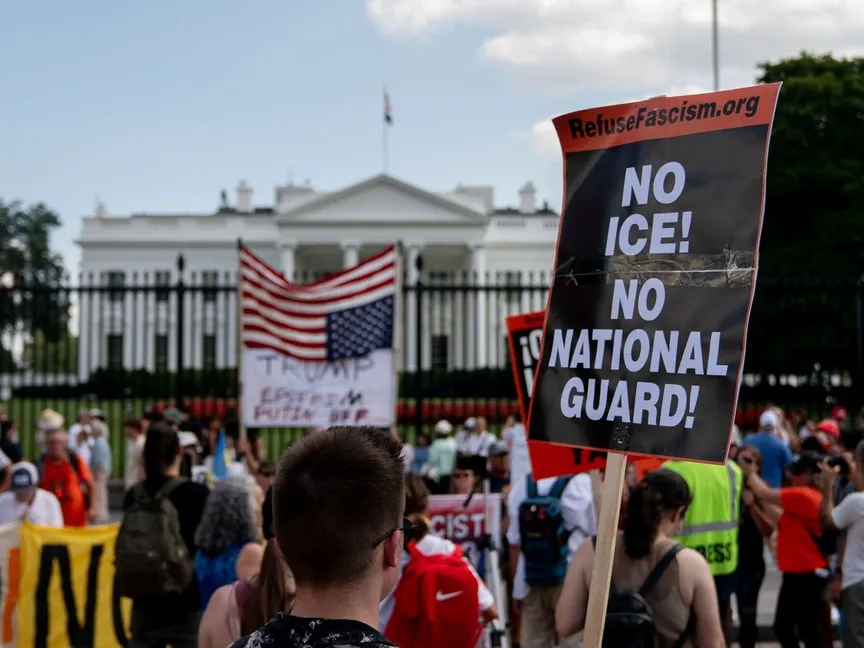 وتزامناً مع هذا التصعيد، شهدت منطقة Dupont Circle في واشنطن احتجاجات واسعة السبت ضد تدخل ترمب، تلاها مسيرة نحو البيت الأبيض الذي يبعد نحو 2.5 كيلومتر، ورفع المحتجون لافتة كتب عليها: "لا للاستيلاء الفاشي على العاصمة"، فيما حمل آخرون لافتات تقول "لا للاحتلال العسكري".