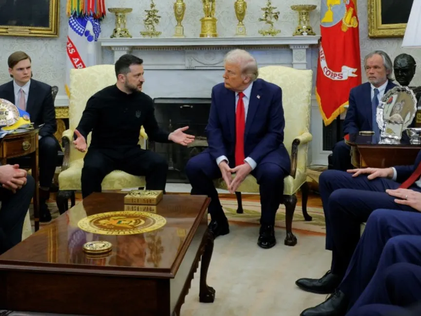الرئيس الأميركي دونالد ترمب يلتقي نظيره الأوكراني فولوديمير زيلينسكي بالبيت الأبيض. 28 فبراير 2025 - REUTERS