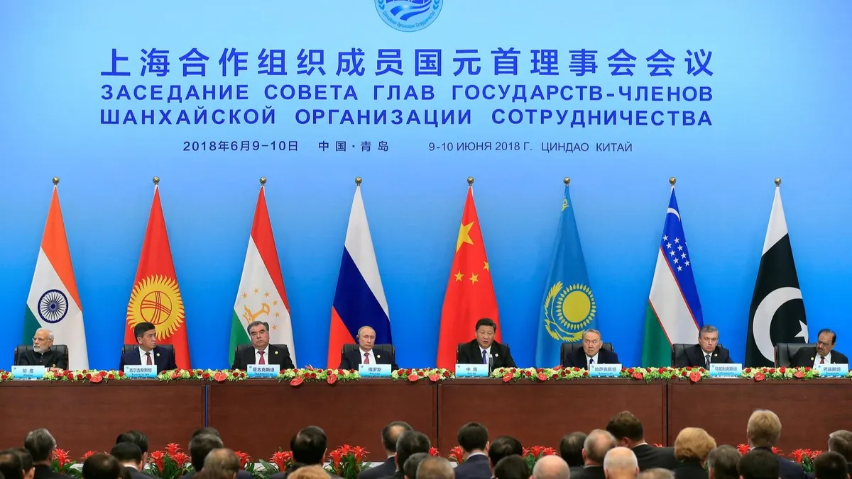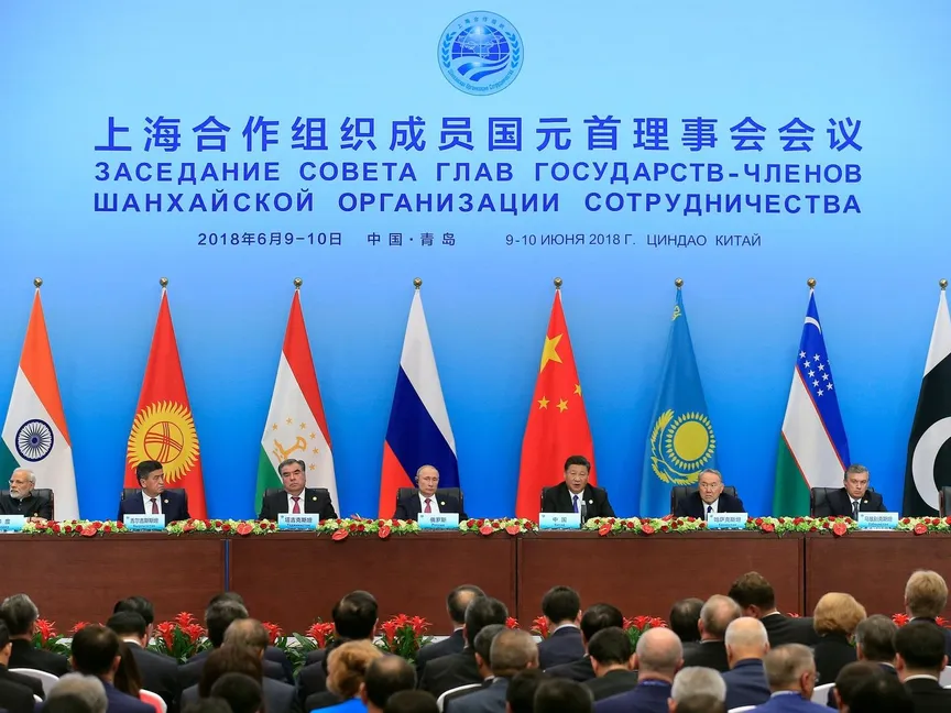 وذكرت "بلومبرغ" أنه لم تتم دعوة الولايات المتحدة مطلقاً للانضمام إلى هذه المنظمة، التي كانت تُنظر إليها في الغرب عند تأسيسها على أنها توازن شرقي مدعوم من الصين في مواجهة تحالف "الناتو".