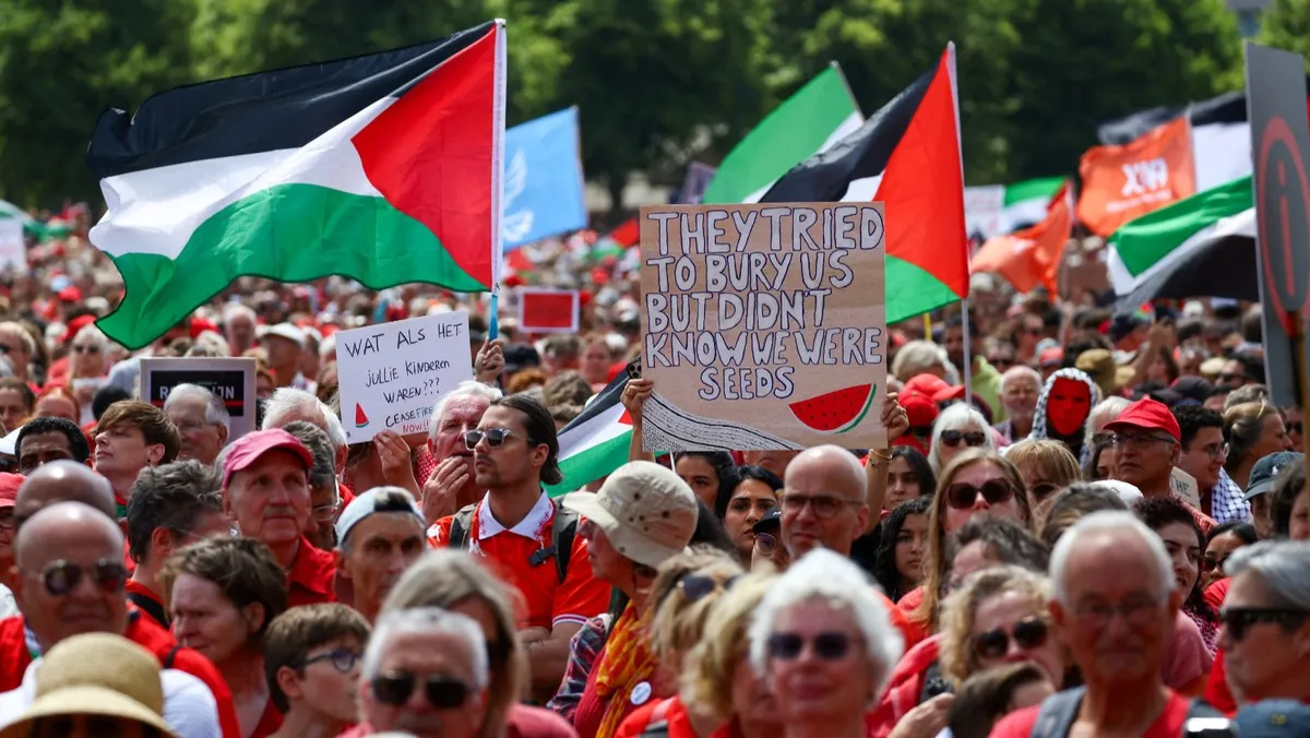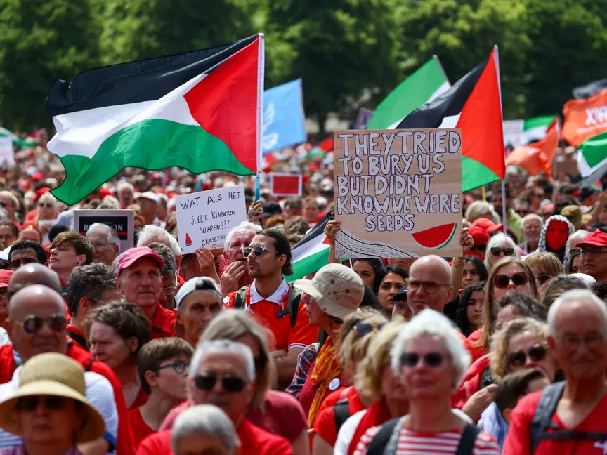 متظاهرون يحتجون على الحرب الإسرائيلية على قطاع غزة في مدينة لاهاي. هولندا. 15 يونيو 2025 - Reuters