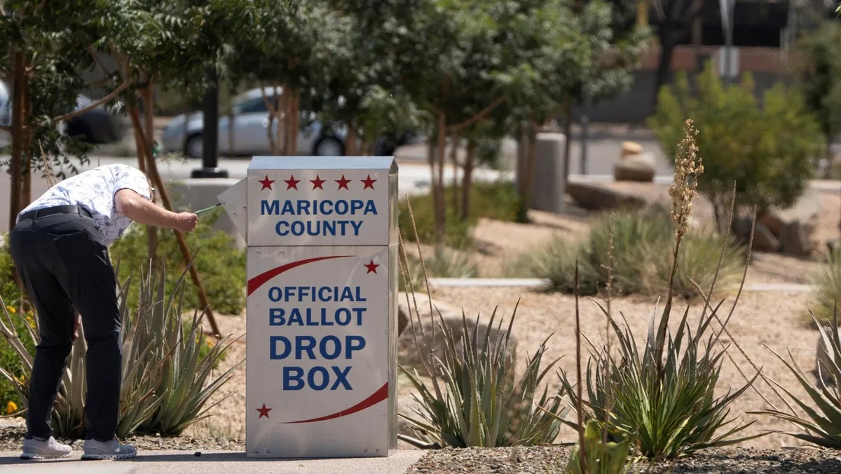 يُدلي ناخب بصوته عبر البريد خلال الانتخابات التمهيدية لولاية أريزونا. 30 يوليو 2024 - REUTERS