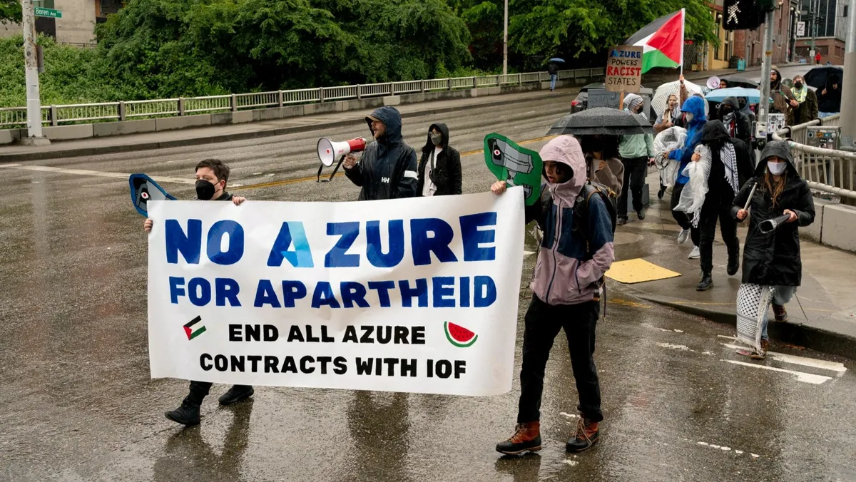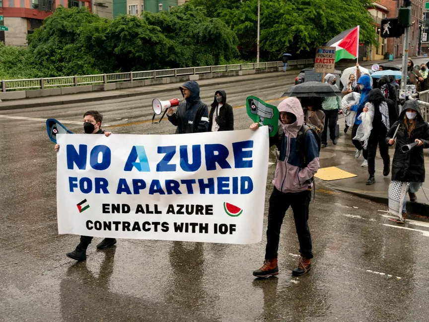 وطالبت مجموعة No Azure for Apartheid، التي يشير اسمها إلى برمجيات Azure التابعة إلى "مايكروسوفت"، الشركة بقطع علاقاتها بإسرائيل ودفع تعويضات للفلسطينيين.