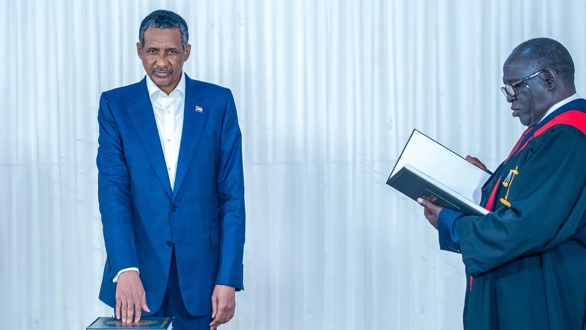 وذكر تحالف السودان التأسيسي في بيان على حسابه بمنصة "إكس"، أن حميدتي أدى اليمين في مدينة نيالا بجنوب دارفور، معتبراً أن "الخطوة تمثل بداية مرحلة جديدة نحو بناء نظام لامركزي وفق دستور السودان الانتقالي لسنة 2025".