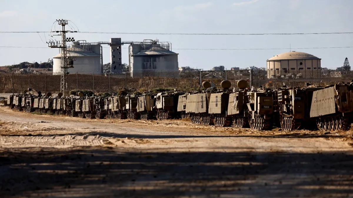 ناقلات الجنود المدرعة الإسرائيلية تقف مصطفة على الجانب الإسرائيلي من الحدود مع غزة. 2 سبتمبر 2025 - Reuters