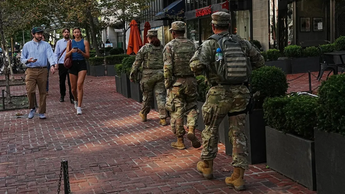 أفراد من الحرس الوطني يقومون بدورية بالقرب من حي دوبونت سيركل في العاصمة واشنطن. 2 سبتمبر 2025 - REUTERS