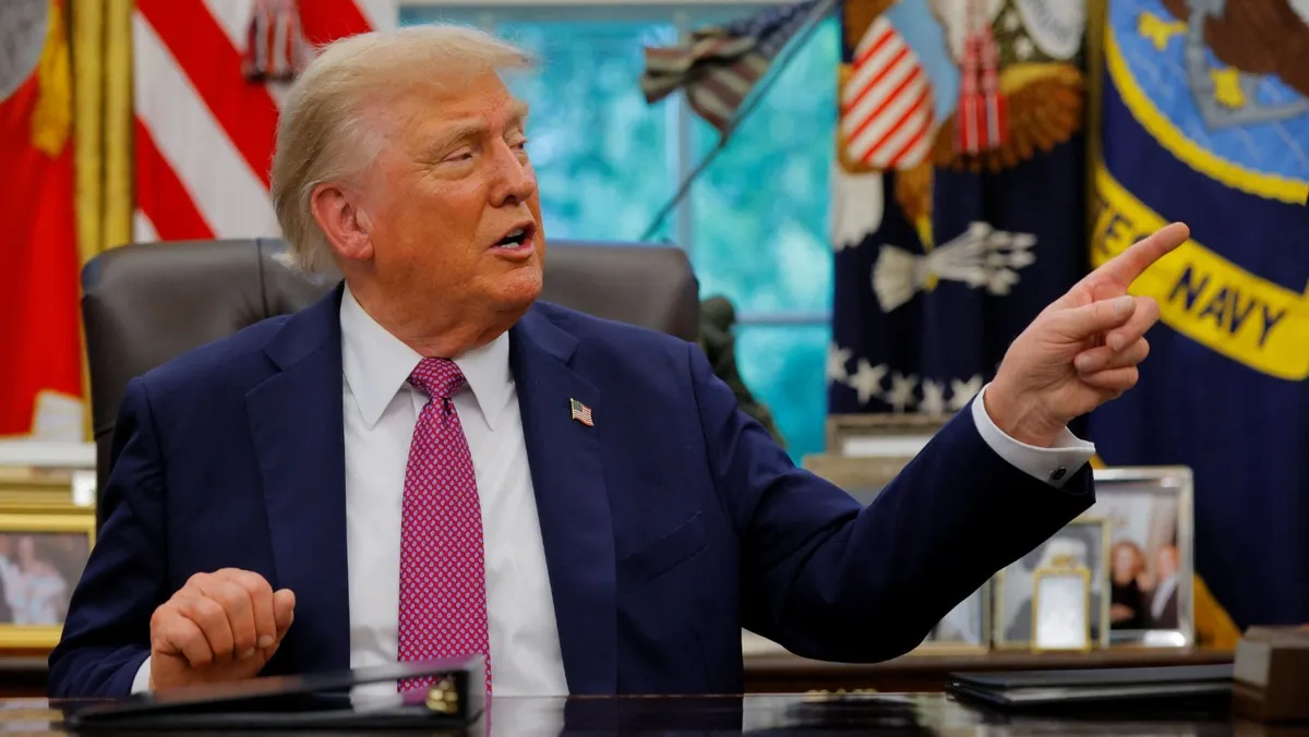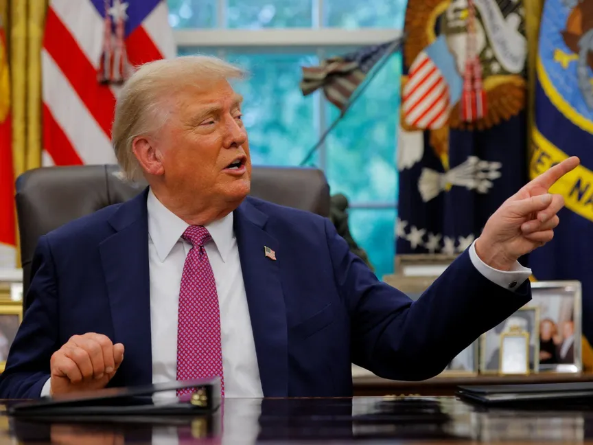 الرئيس الأميركي دونالد ترمب يتحدث مع وسائل الإعلام في المكتب البيضاوي بالبيت الأبيض في واشنطن العاصمة. 5 سبتمبر 2025 - Reuters