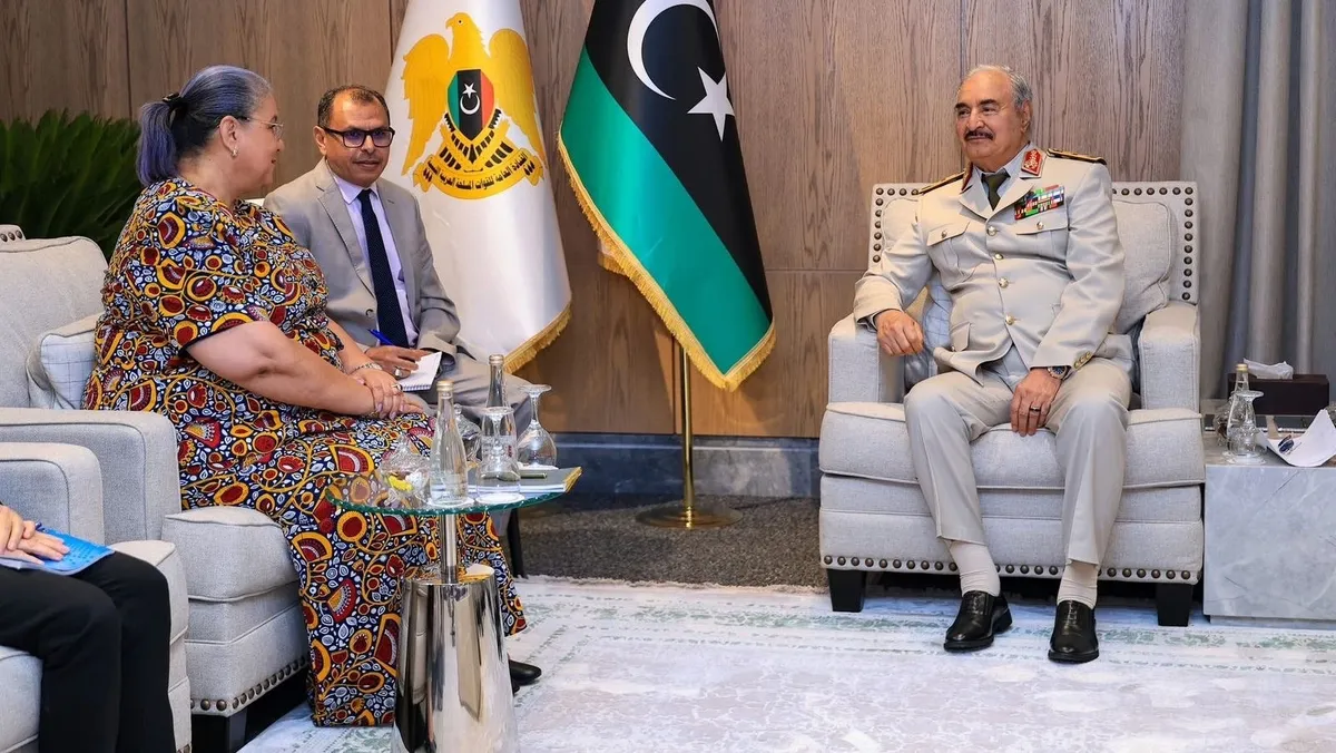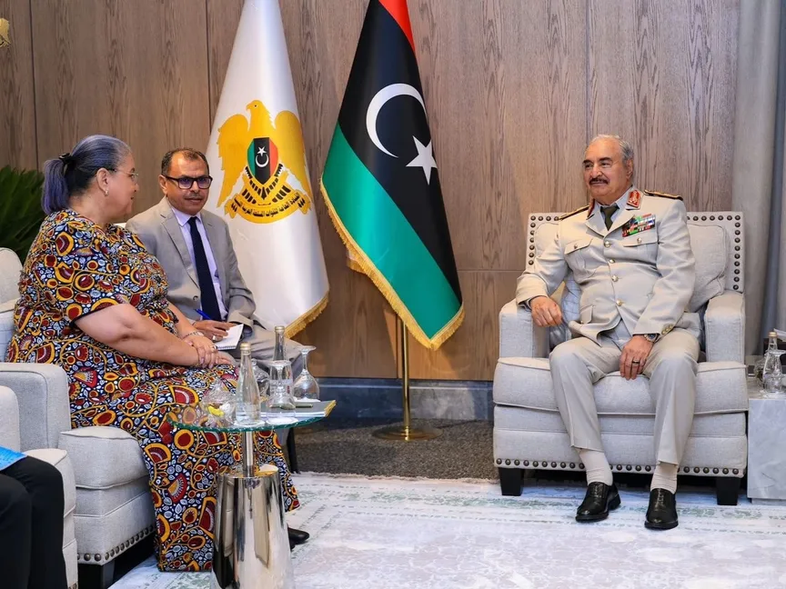 ورحبت الممثلة الأممية بتعاون الجيش الليبي مع بعثة الأمم المتحدة، فيما جدد حفتر ونائبه صدام حفتر، التزامهما بدعم خارطة الطريق من خلال الحوار والتشاور الشامل.