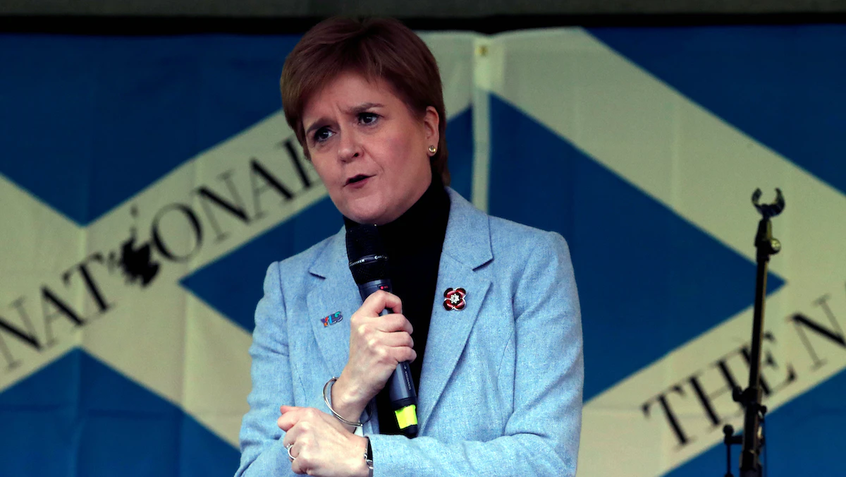 رئيسة وزراء اسكتلندا، نيكولا ستورجن، تتحدث خلال مسيرة مؤيدة لاستقلال بلادها عن بريطانيا، غلاسكو، اسكتلندا - REUTERS