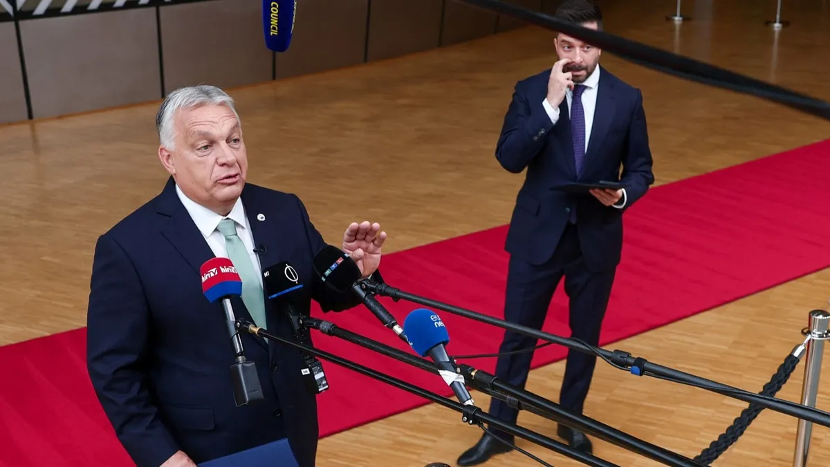 رئيس الوزراء المجري فيكتور أوربان خلال حضوره قمة زعماء الاتحاد الأوروبي في بروكسل. 26 يونيو 2025 - Reuters