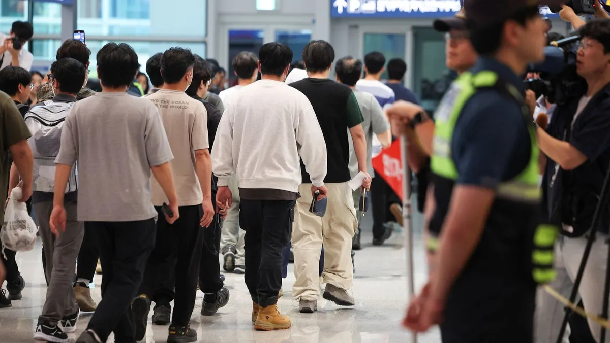 أعادت كوريا الجنوبية، الجمعة، أكثر من 300 من مواطنيها ممن اعتُقلوا خلال مداهمة نفذتها إدارة الهجرة في الولايات المتحدة داخل مصنع لشركة "هيونداي" بولاية جورجيا الأسبوع الماضي، وذلك بعد أن رفضوا عرضاً أميركياً بالبقاء، حسبما أفادت وكالة "أسوشيتد برس".