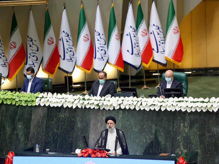 الرئيس الإيراني خلال تأدية اليمين أمام مجلس الشورى، 5 أغسطس 2021 -  REUTERS
