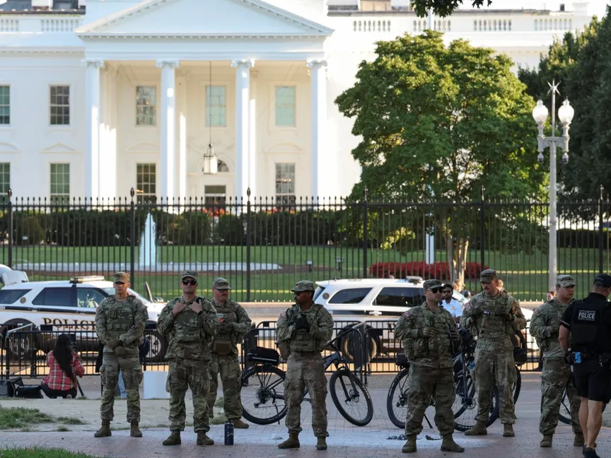 جنود من الحرس الوطني الأميركي قرب حديقة لافاييت المجاورة للبيت الأبيض بالعاصمة واشنطن. 25 أغسطس 2025 - REUTERS