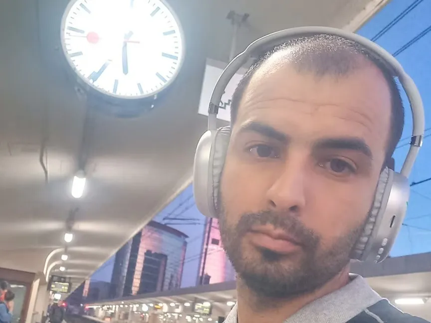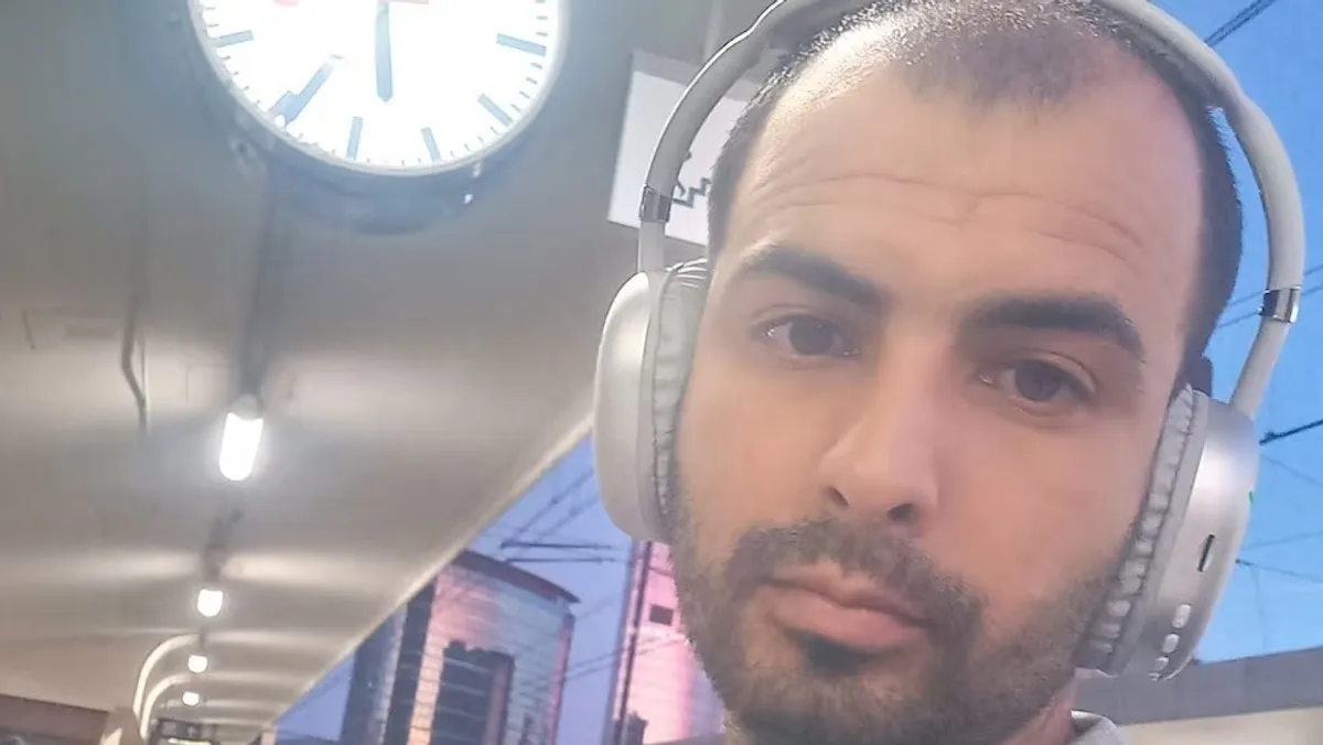 الفلسطيني محمد أبو دقة (31 عاماً) يلتقط صورة ذاتية داخل محطة قطار في بروكسل، بلجيكا. 25 أغسطس 2025 - Reuters