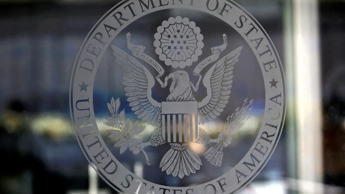 شعار وزارة الخارجية الأميركية في واشنطن بالولايات المتحدة. 26 يناير 2017 - Reuters