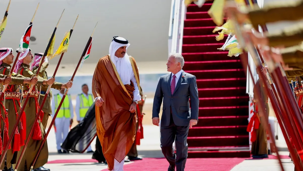 وأعرب الزعيمان عن اعتزازهما بمستوى العلاقات الأخوية والتاريخية التي تجمع البلدين، مؤكدين أهمية تفعيل اللجنة العليا الأردنية القطرية المشتركة.