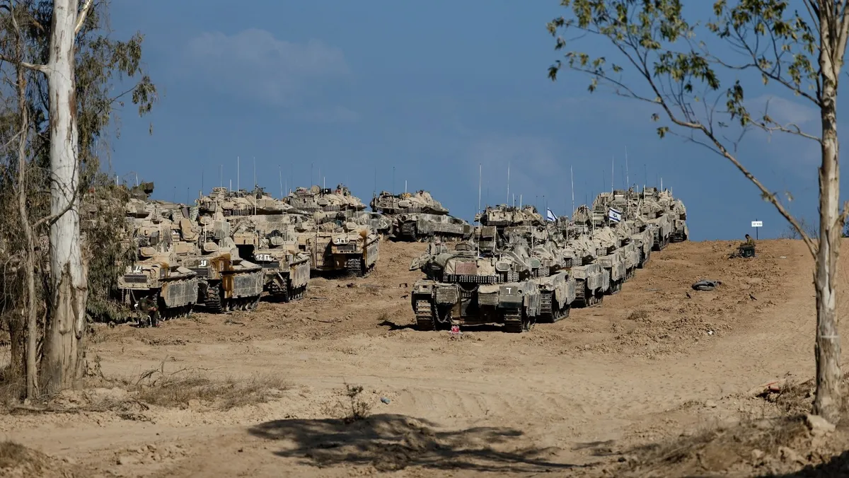 ووفقاً للصور، حشد الجيش الإسرائيلي مجموعتين رئيسيتين من الآليات المدرعة في منطقة الشيخ رضوان، مع انتشار وحدات إضافية على الطرق المؤدية إلى داخل إسرائيل.