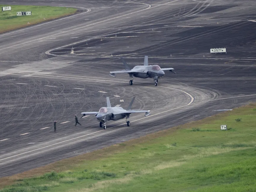 طائرتان مقاتلتان من طراز F-35 في قاعدة روزفلت رودز العسكرية في سيبا ببورتوريكو. 19 سبتمبر 2025 - Reuters