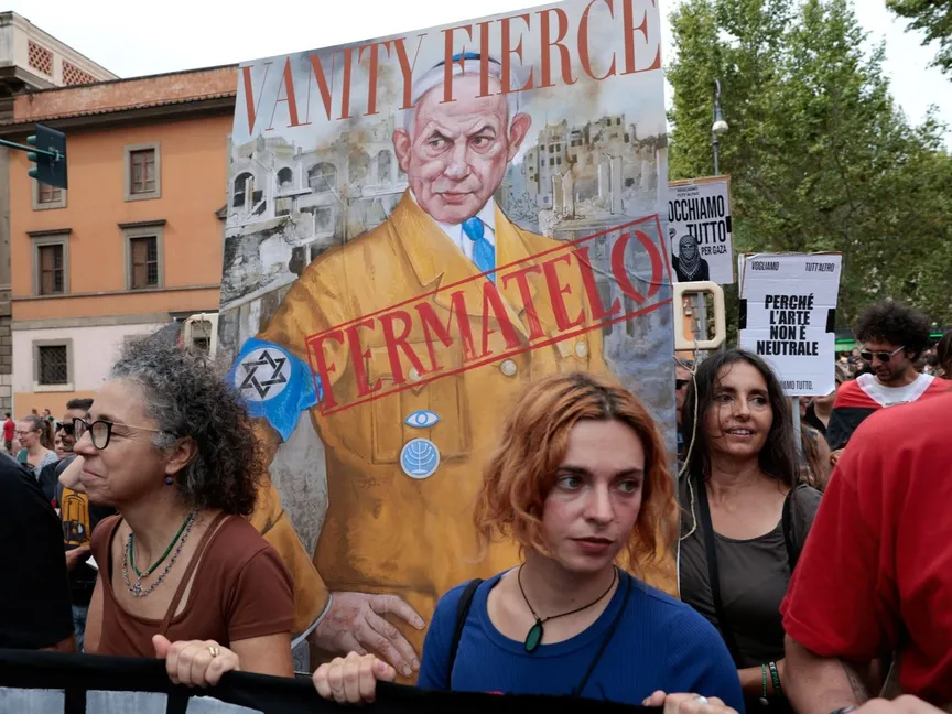 احتجاجات منددة بالحرب الإسرائيلية على غزة في العاصمة الإيطالية روما. 22 سبتمبر 2025 - REUTERS
