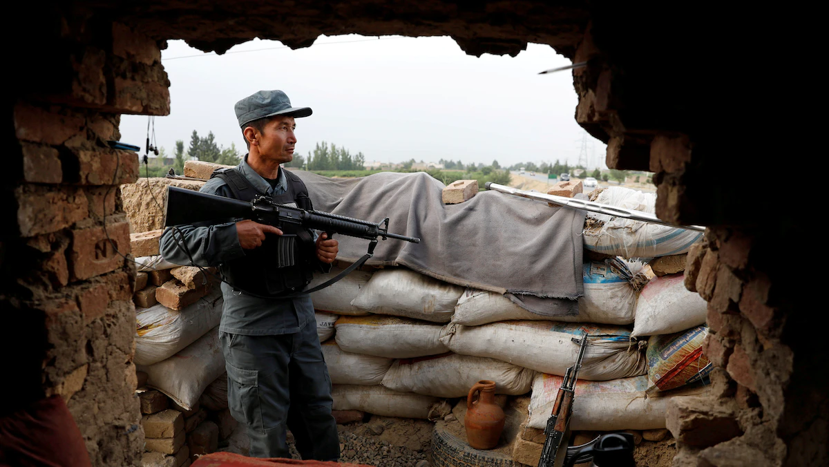 شرطي أفغاني يحرس نقطة تفتيش بضواحي العاصمة كابول- 13 يوليو 2021 - REUTERS