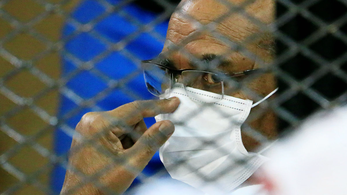 الرئيس السوداني السابق عمر البشير خلال جلسة محاكمته في الخرطوم - REUTERS