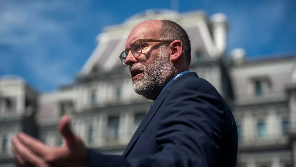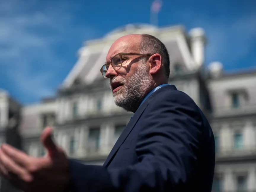 مدير مكتب الإدارة والميزانية راسل فوجت يتحدث إلى الصحفيين خارج الجناح الغربي للبيت الأبيض في واشنطن العاصمة. 17 يوليو 2025 - reuters