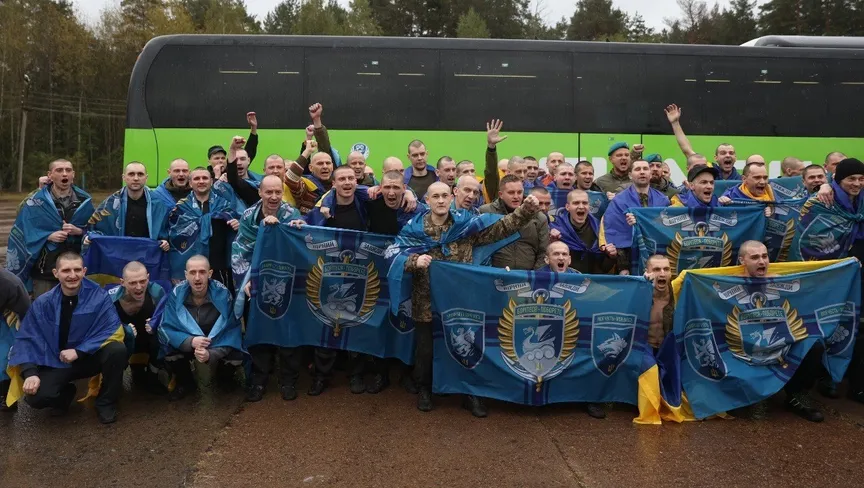 ونشر الرئيس الأوكراني فولوديمير زيلينسكي صوراً لرجال ملفوفين بعلم أوكرانيا وكتب على تطبيق تيليجرام "معظم هؤلاء السجناء كانوا في الأسر منذ 2022،
