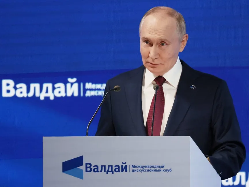 الرئيس الروسي فلاديمير بوتين يلقي خطاباً خلال المؤتمر الدولي السنوي لنادي فالداي للمناقشات في سوتشي، روسيا. 2 أكتوبر 2025 - Reuters
