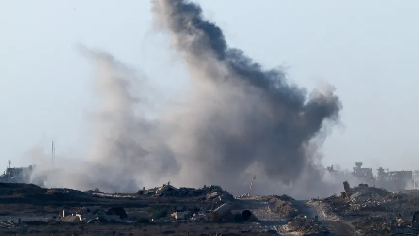 الدخان يتصاعد من مدينة غزة عقب انفجار، 4 أكتوبر 2025. - REUTERS